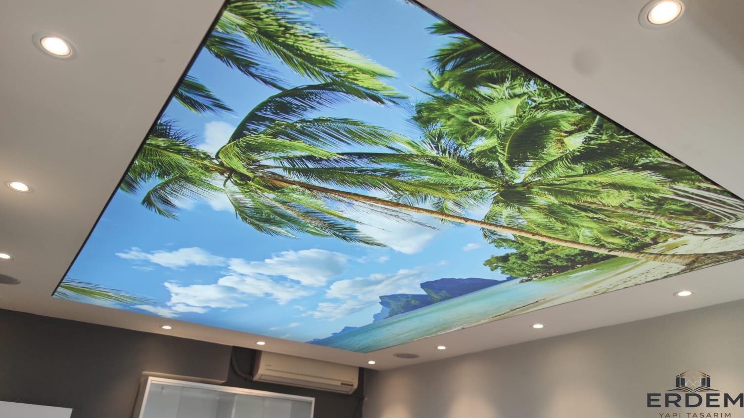 Dijital baskı teknolojisi sayesinde hayal gücünüzün sınırlarını zorlayabilirsiniz. 2026 yılı itibarıyla gelişmiş baskı teknikleri, tavanda yalnızca desen değil, gerçek bir derinlik algısı oluşturulmasını sağlıyor .