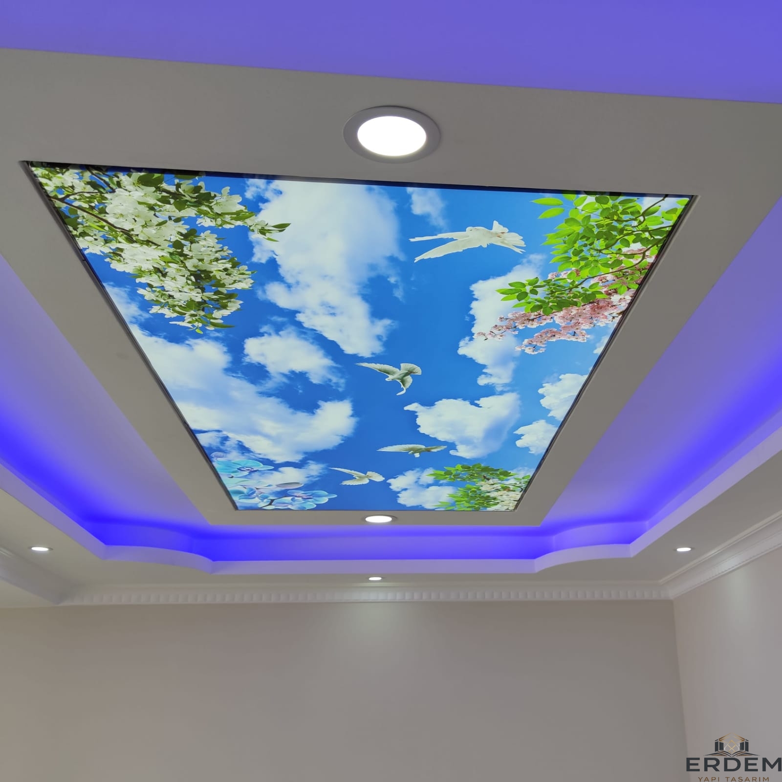 Dijital baskı teknolojisi sayesinde hayal gücünüzün sınırlarını zorlayabilirsiniz. 2026 yılı itibarıyla gelişmiş baskı teknikleri, tavanda yalnızca desen değil, gerçek bir derinlik algısı oluşturulmasını sağlıyor .
