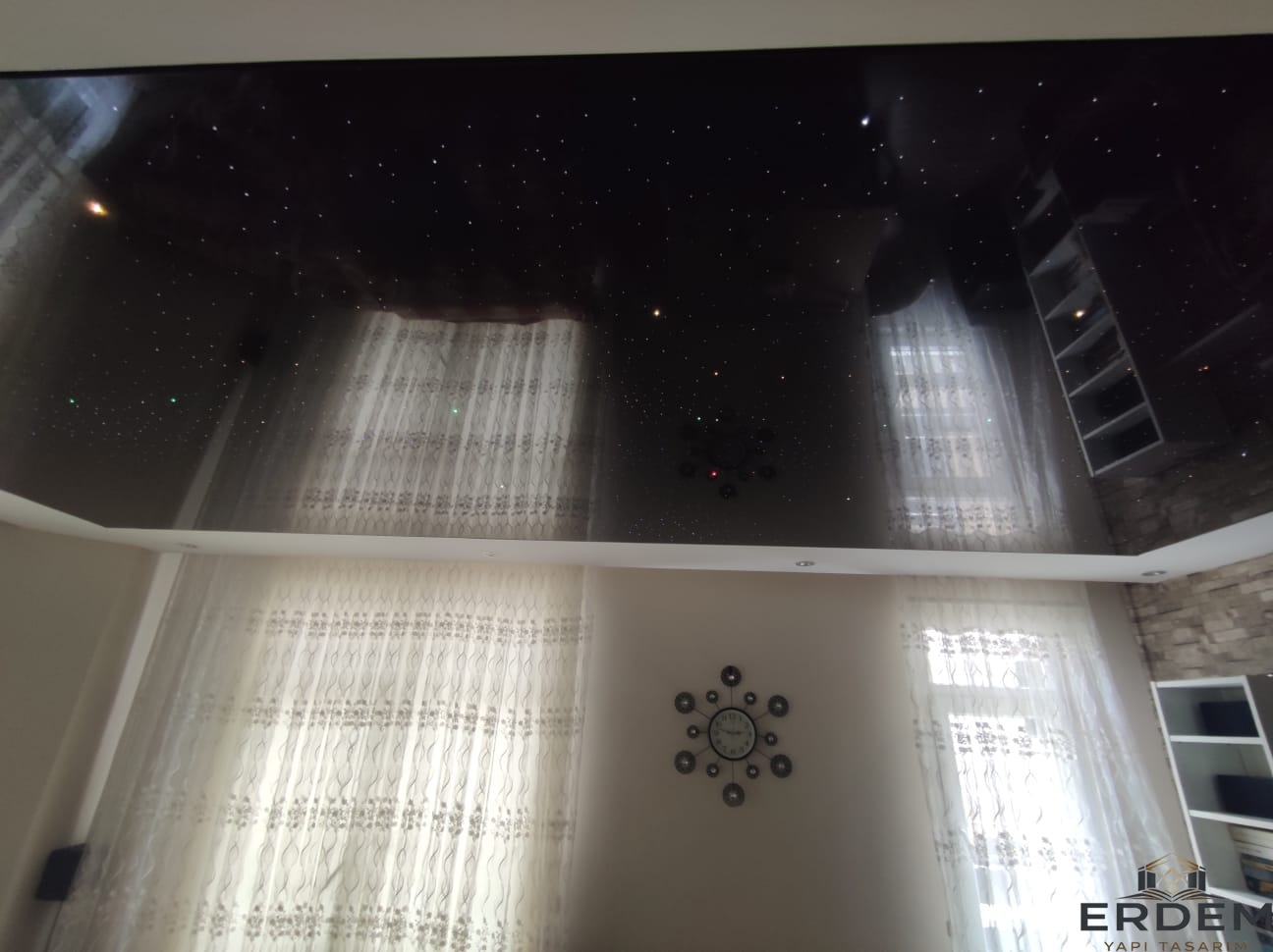 Ayna gergi tavanlar, yüksek yansıtma özelliği ile salonunuzda büyüleyici bir etki yaratır. Özellikle yemek masası veya oturma grubu üzerinde uygulandığında mekâna ayrı bir zarafet katar.